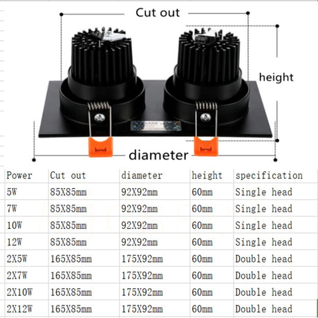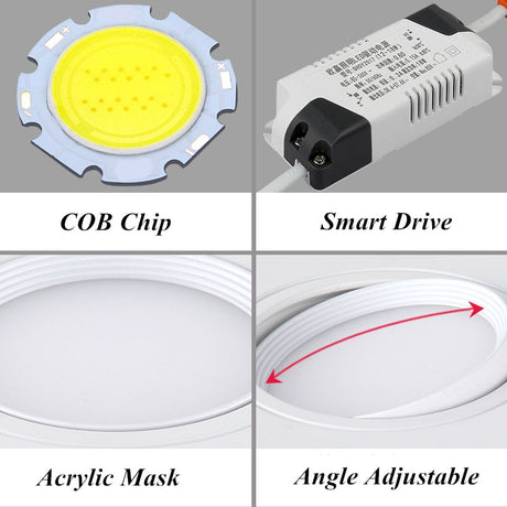 Dimmable LED Downlights Indoor Lighting 10W 15W 20W 30W, AC85-265V Adjustable 360° COB