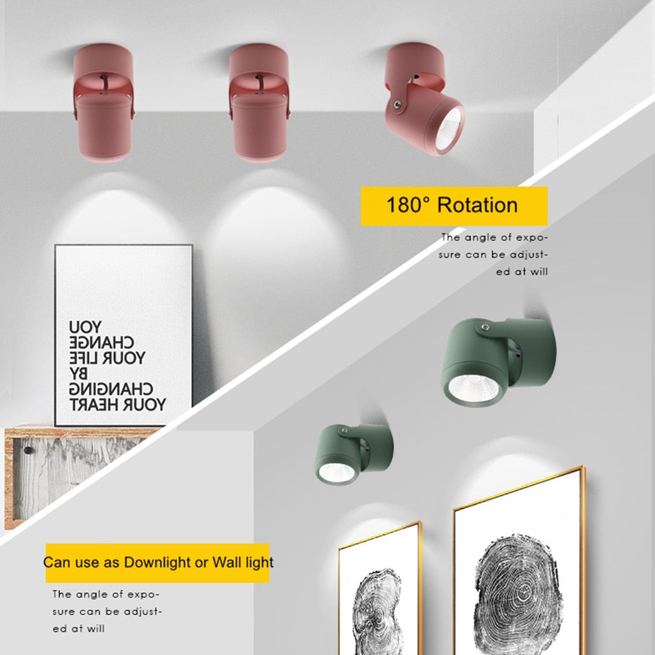COB LED Downlight Surface Mounted Led Ceiling Lamp Colorful Led Spot 7W 10W 15W 20W Adjustable 180 Degree Rotation Indoor Lights