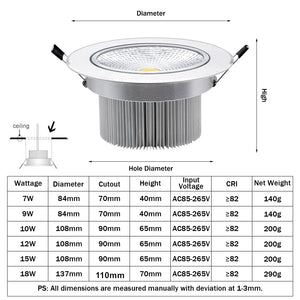 Model Number: COB Downlights Dimmable