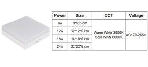 Category: 12W, 18W, 24W, 6W, 85-265V, Cold White, square, Surface Mounted, Warm White, White