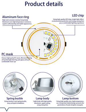Category: 10 PCS, 12W, 15W, 18W, 220V, 5W, 9W, Cold White, Downlights, golden, LED, Recessed, silver, Spotlight, warm white, White