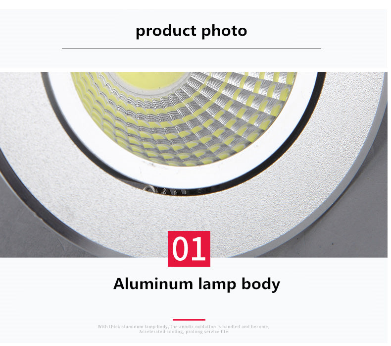 Silver Round Dimmable Recessed LED COB Downlight 3W/5W/7W/12W/15W Recessed LED Ceiling Spot Light 3000K 4000K 6000K AC90-265V