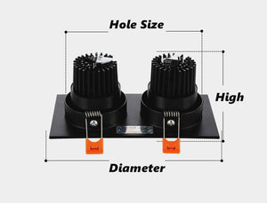 Category: 12W, 18W, 7W, 85-265V, 9W, black, Cold White, Dimmable, Double Heads, Downlights, LED, Natural White, square, warm white