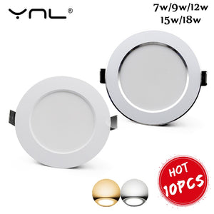 Category: 10 PCS, 12W, 15W, 18W, 220V, 230V, 7W, 9W, Cold White, Downlights, LED, Recessed, Round, silver, Warm White, White