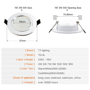 Category: 12W, 15W, 18W, 220V, 3W, 5W, 7W, 9W, Cold White, Downlights, LED, living room, warm white