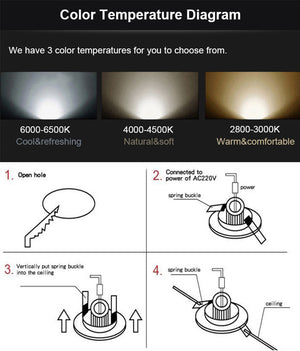 Category: 12V, 3W, 5W, 90-260V, black, Cold White, Dimmable, Downlights, LED, Natural White, Recessed, Warm White, White