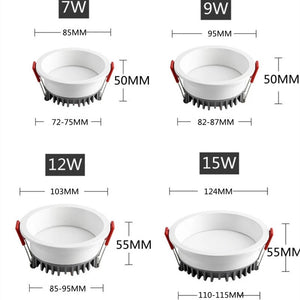 Category: 12W, 15W, 7W, 85-265V, 9W, Anti-glare, Dimmable, Downlights, LED, Recessed