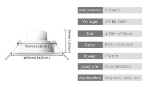 Category: 110V, 220V, 7W, Dimmable, Downlights, LED, RGB, RGBW, Round, White