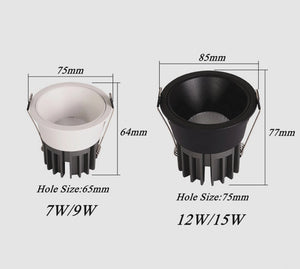 Category: 12W, 15W, 7W, 85-265V, 90-260V, 9W, Anti Glare, black, Dimmable, Downlights, golden, LED, Recessed, White