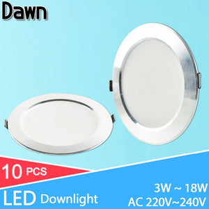LED Downlight 10pcs 3w 5w 7w 9w 12w 18w AC 220V 240V Aluminum Ultrathin downlight Indoor LED Ceiling Round Recessed Waterproof
