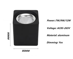 Category: 12W, 1PCS, 7W, 85-265V, 90-260V, 9W, black, Cold White, Dimmable, Downlights, LED, Spotlight, square, Surface Mounted, warm white, White