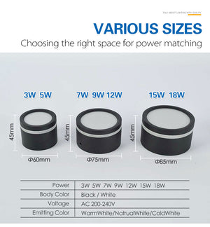 Watt: 3W ; 5W ; 7W ; 9W ; 12W ;15W ; 18W