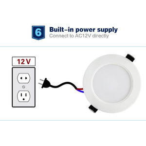 Category: 12V, 5W, 7W, 9W, Cold White, Dimmable, Downlights, LED, Natural White, Recessed, Round, warm white, White