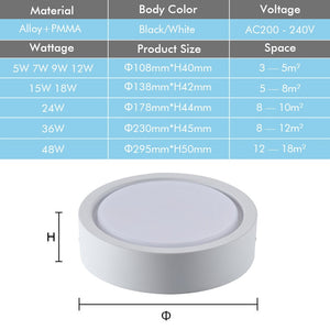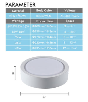 Category: 12W, 15W, 18W, 220V - 240V, 7W, 9W, black, Cold White, Downlights, LED, Natural White, Surface Mounted, Warm White, White