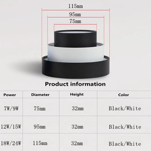 Category: 12W, 15W, 18W, 7W, 85-265V, 9W, black, Cold White, Downlights, LED, Round, Surface Mounted, Ultra-Thin, Warm White, White