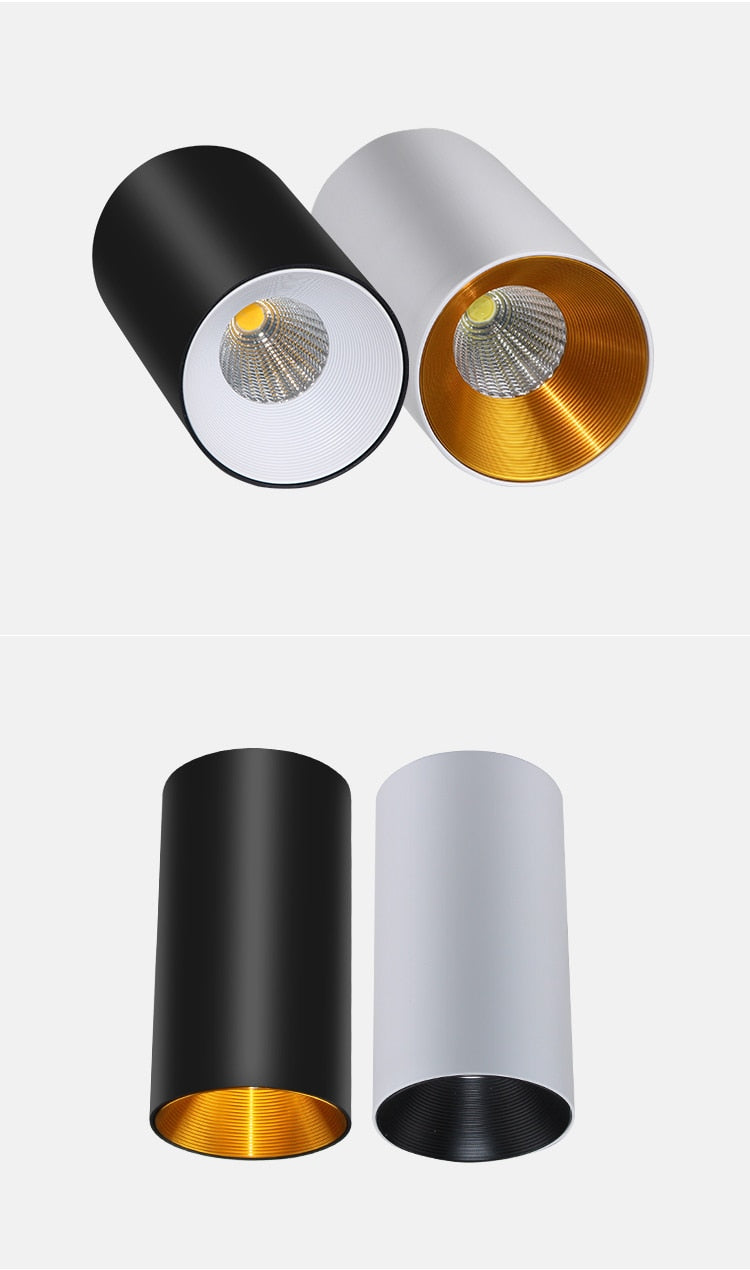 Dimmable high brightness LED COB ceiling spotlight 7W 9W 12W long surface mount downlight indoor lighting kitchen bedroom - White plus gold / 7W / 6000K, No dimming