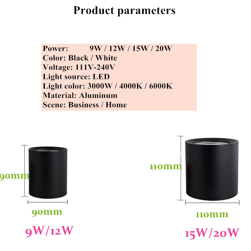Dimmable Round Surface Mounted LED Downlights 9W 12W 15W 20W COB LED Ceiling Spot Light AC85-265V LED Ceiling Lamp Indoor Lighting - Cold White / 20w white dimmable is backordered and will ship as soon as it is back in stock.
