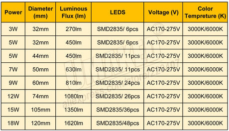Round recessed downlight dimming 5W 7W 9W 12W 15W 18W LED ceiling spotlight, home lighting AC85-265V