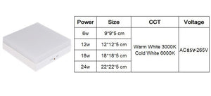 Category: 12W, 18W, 24W, 6W, 85-265V, Cold White, Downlights, LED, Round, square, Surface Mounted, Warm White, White