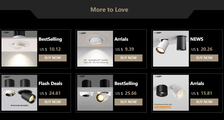 DBF Long Tube Angle Adjustable LED COB Recessed Downlight Not Dimmable 12W Ceiling Spot Light 3000K 4000K 6000K AC110V/220V