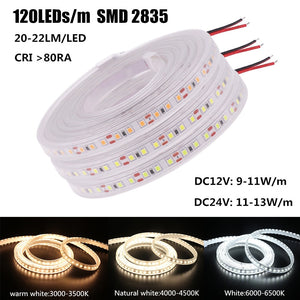 DC 12V/24V LED Strip Waterproof IP67 120LEDs/m Natural White 4000K /Warm White Flexible Tape 2835 LED Light Lamp 0.5m-10m
