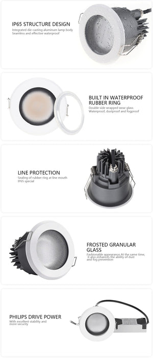 Category: Anti-fog, Anti-glare, black, Cold White, Dimmable, Downlights, IP65, LED, Natural White, Recessed, Warm White, waterproof, White
