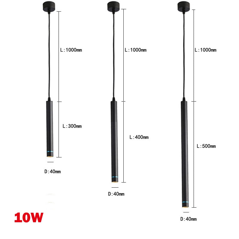 Dimmable 7w LED Pendant Lamp Long Tube downlight Island Dining Room Shop Bar Decoration Cylinder Pipe Lights Cord Pendant Lamps - Black / 10W Dimmable / L 300mm, Natural white