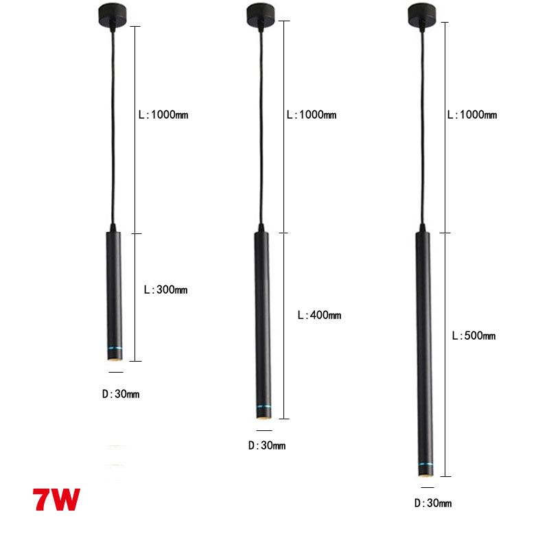 Dimmable 7w LED Pendant Lamp Long Tube downlight Island Dining Room Shop Bar Decoration Cylinder Pipe Lights Cord Pendant Lamps