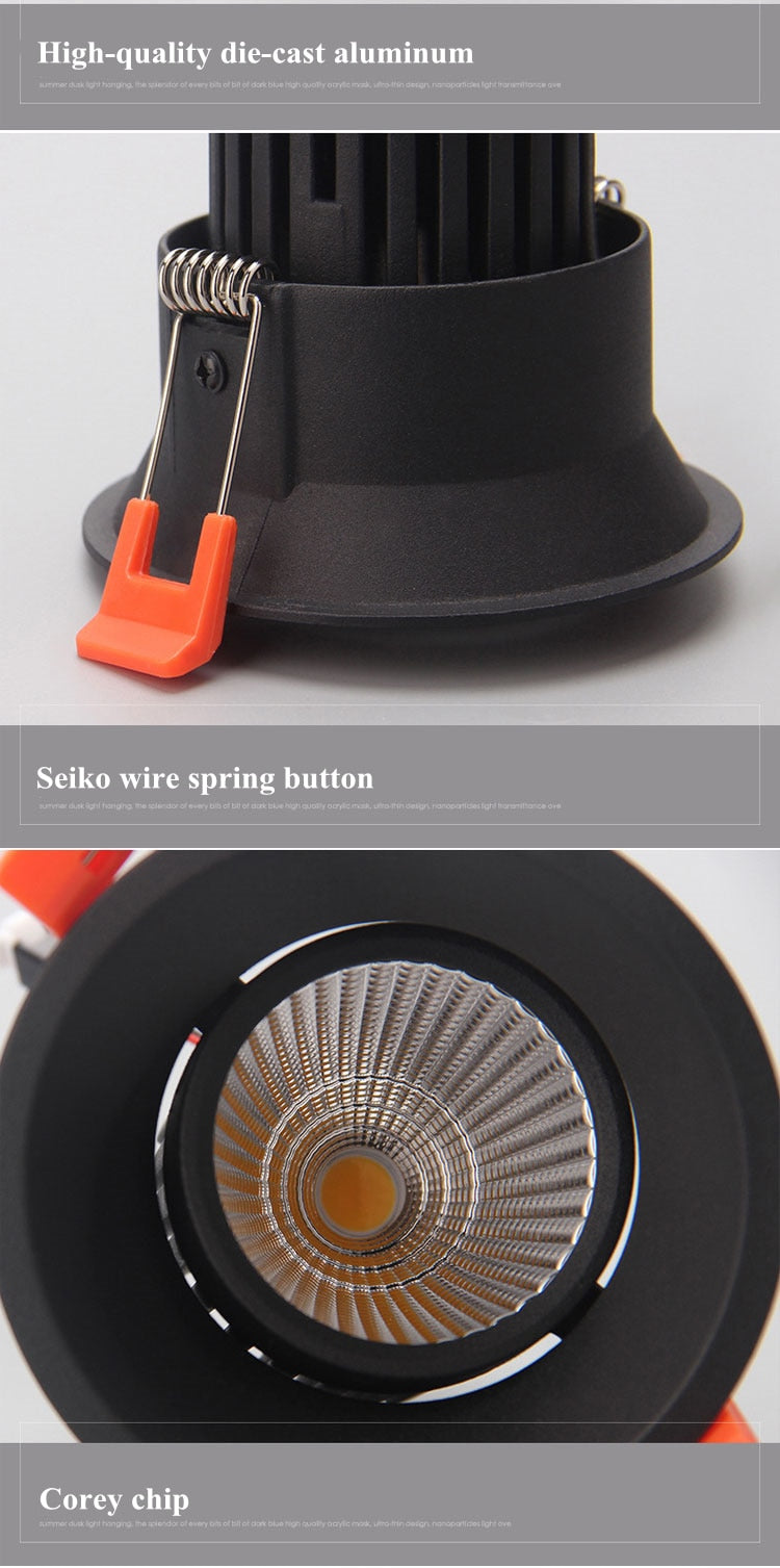 Dimmable LED Downlight 7W 10W 12W 85-265V COB LED DownLights Dimmable COB Spot Recessed Down light Light Bulb white body - 3000K / 12W Dimmable / black is backordered and will ship as soon as it is back in stock.