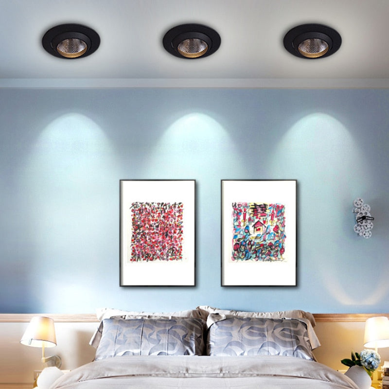 Dimmable Round Recessed COB LED Downlights 9W 12W 15W LED Ceiling Spot lights Background Painting Lamps AC85~265V Indoor Lighting