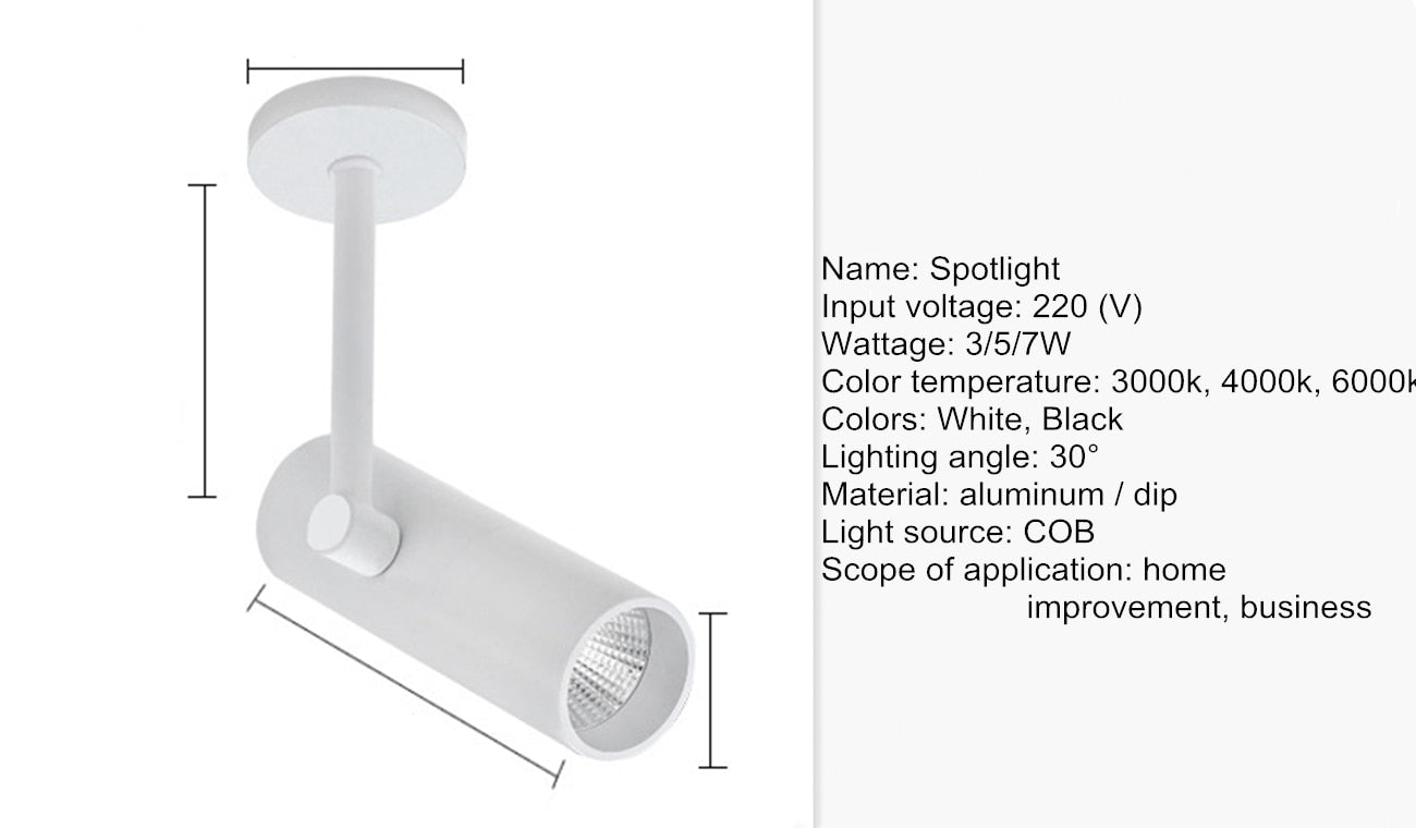 Downlight spotlight LED rotating surface installation COB 3w 5w 7w 10W 12W art background wall ceiling lamp spot light family store - 3000K warm light / 3W / white is backordered and will ship as soon as it is back in stock.