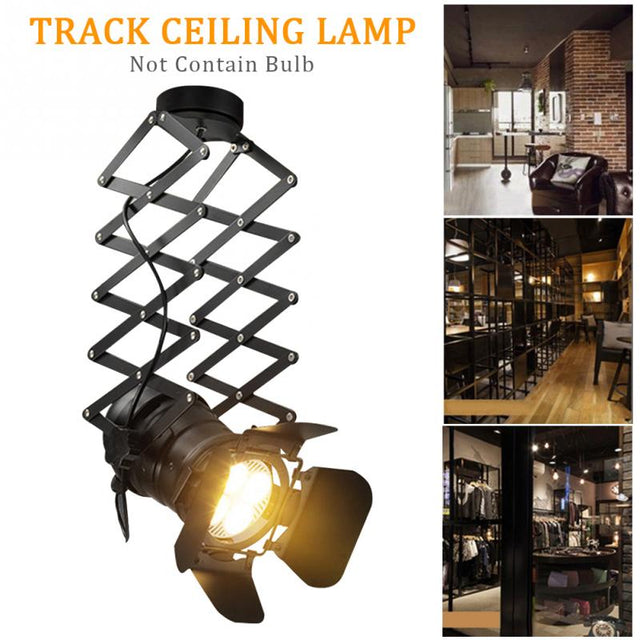 E27 Exhibition Hall Iron Art Bedroom Track Ceiling Lamp Bar Retro Industrial Hotel Telescopic Spotlight High Power Adjustable