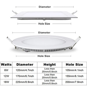 6W 12W 18W LED Round Square Recessed Ceiling Flat Panel Ultra Slim Down Light AC85-265V LED Ultra-Thin Light Cool White Warm White Flush Mount Ceiling Indoor Lighting