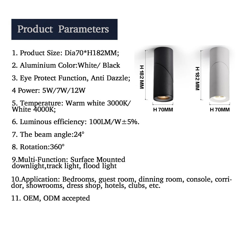 LED Ceiling Spotlight Surface Mounted Downlight 5W 7W 12W White/Black for Living Home Commercial Lighting New Design