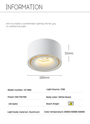 Category: 10W, 15W, 220V, 3000K, 4000K, 6000K, black, Downlights, LED, Round, Surface Mounted, White