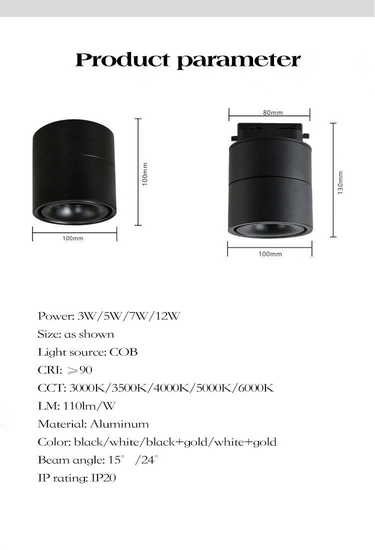LED Lights 360° Rotating Ceiling Lamp Golden Track Light led Downlight Surface Spotlight Indoor Lighting Living Room Spot Light