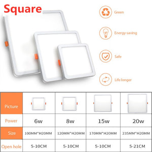 LED Panel Light 6W 8W 15W 20W Round Square Spot light AC85~265V ceiling light Indoor Recessed Downlight Down Light Home Decor