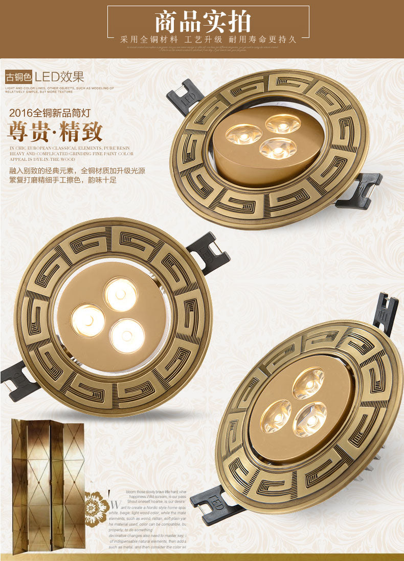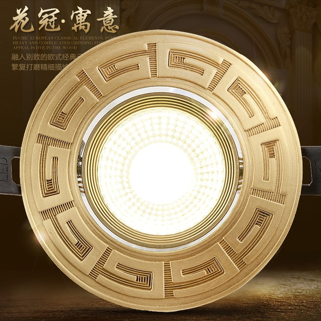 Loft European Style Luxury Pure Copper 3W 5W COB Downlight Copper LED Ceiling Lamp Indoor light Cafe Store Hall