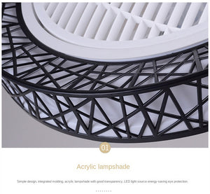 Nordic postmodern intelligent LED ceiling fan with lamp remote control bedroom decorative fan invisible silent ceiling fan lamp