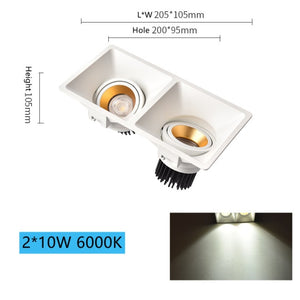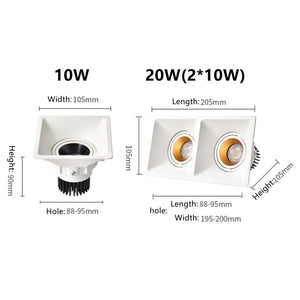 Category: 10W, 110V, 20W, 220V, 3000K, 4000K, 6000K, Dimmable, Double Heads, Downlights, LED, Recessed, square