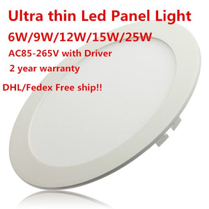 Ultra Thin Led Panel Downlight 6w 9w 12w 15w 25w Round Ceiling Recessed Spot Light AC85-265V Painel lamp Indoor Lighting