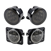Combo for 2007-2015 Jeep Wrangler Smoke Lens Amber LED Front Turn Signal Light + Fender Side Marker Parking Lamp - combo no halo is backordered and will ship as soon as it is back in stock.