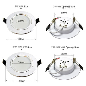 Category: 110V, 15W, 220V, 230V, 4 PCS, 5W, 9W, Cold White 6000K, Downlights, LED, silver, Warm White 3000K