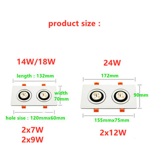 Dimmable 360 Angle Rotatable LED Recessed Downlight Epistar Chip 14W 18W 24W COB Spot Light Ceiling Lamp AC85~265V