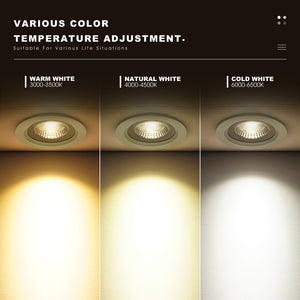 Category: 15W, 90-260V, black, Ceiling Lights, Cold White, Downlights, IP65, LED, Natural White, Recessed, Round, Spotlight, Warm White, waterproof, White