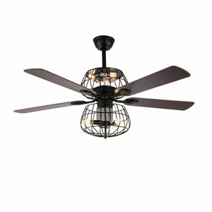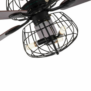 LED Ceiling Fan Light 3 Speed Setting 5 Reversible Wood Blades Retro Cage Chandelier with Remote Control