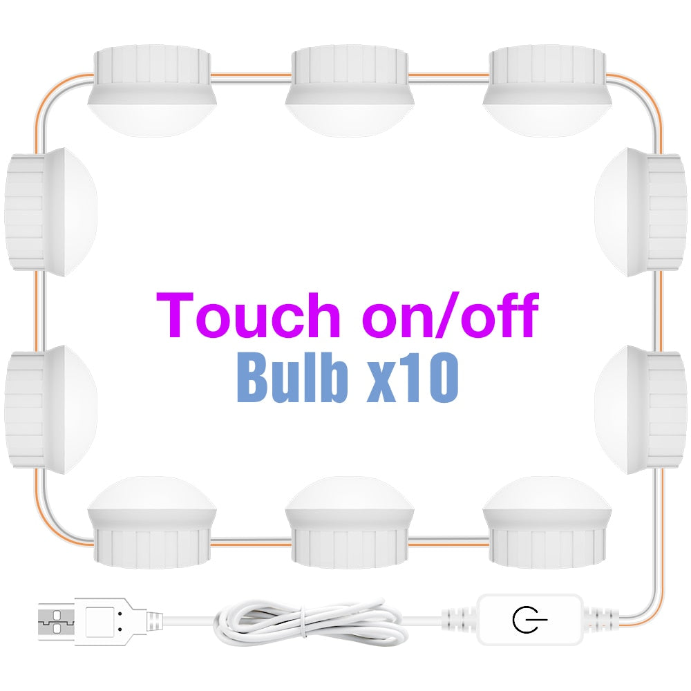 LED Makeup Mirror Light Bulbs USB Hollywood Make up Lamp Vanity Lights Bathroom Dressing Table Lighting Dimmable LED Wall Lamp