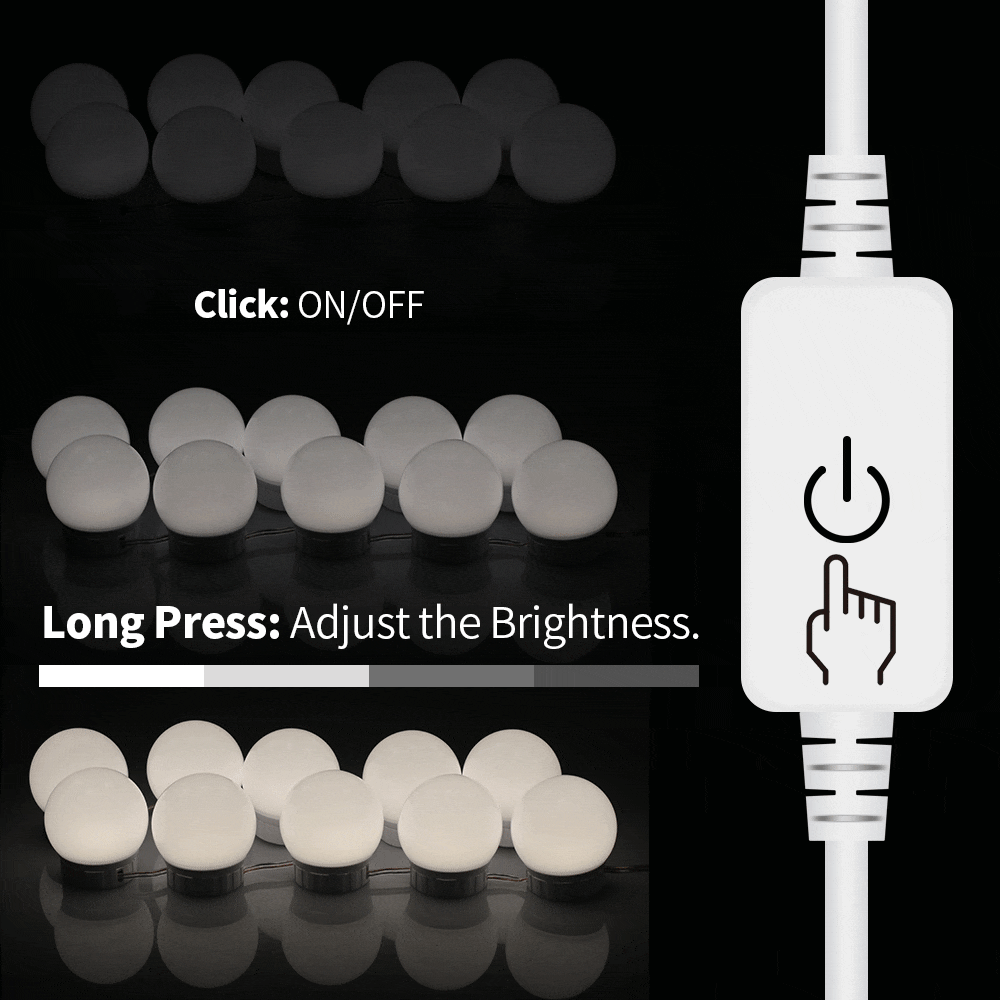 LED Makeup Mirror Light Bulbs USB Hollywood Make up Lamp Vanity Lights Bathroom Dressing Table Lighting Dimmable LED Wall Lamp - Nature White / Type-A-White-2Bulbs / Two Years Warranty|China is backordered and will ship as soon as it is back in stock.