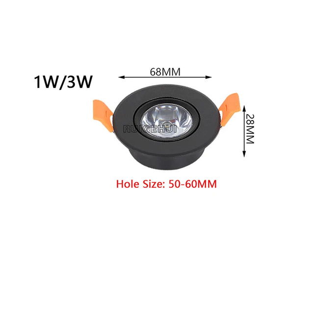 Aluminum Round LED Dimmable Ceiling Downlight 1W 3W AC90-260V DC12V Recessed LED Spot Light Led Bulb Cutout 50mm With Driver