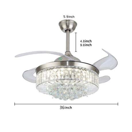 Retractable LED Ceiling Fan Light Crystal Fan Dimmable Pendant Light with Remote Control